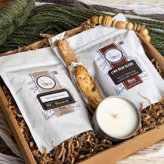 Coffee Break Sampler Box with Handmade Granola, Italian Biscotti, & Gourmet Coffee in Gift Box with Ribbon