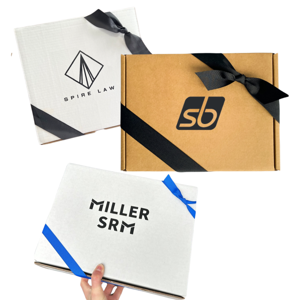 A Gift Box branded with your logo! Perfect for so many uses - thank you gift boxes, customer gifts, new hire welcome packages, and more.