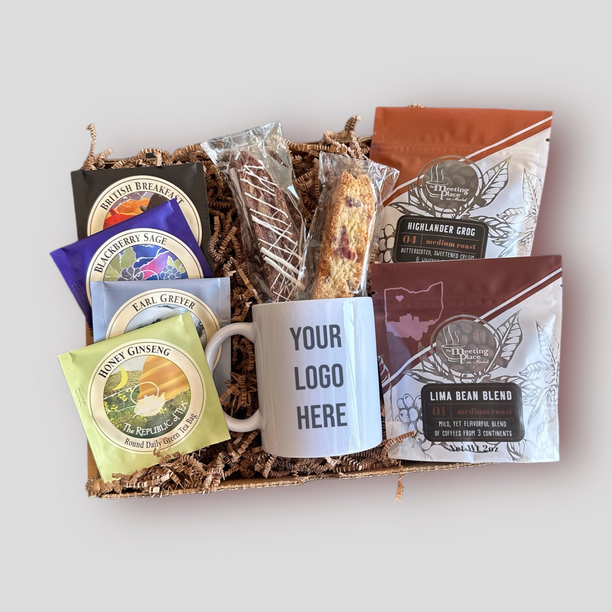 Build Connection with Coffee Gift Basket, Custom Printed Logo Mug Corporate Gift Baskets - The Meeting Place on Market